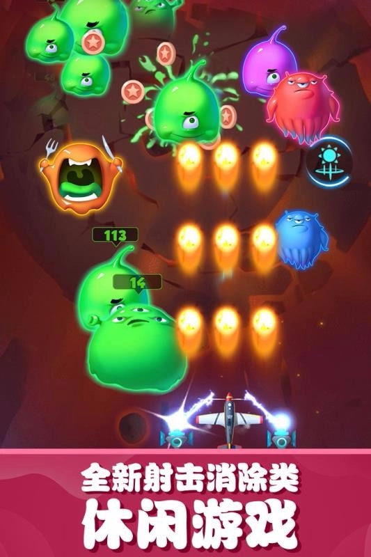 具有非常经典的飞行射击战斗玩法,各种怪物等待你来消灭。