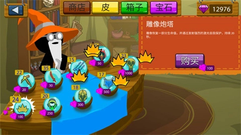 雕像炮塔:雕像会恢复一定生命值,同时通过发射强力激光进行自我防御,该效果持续20秒。