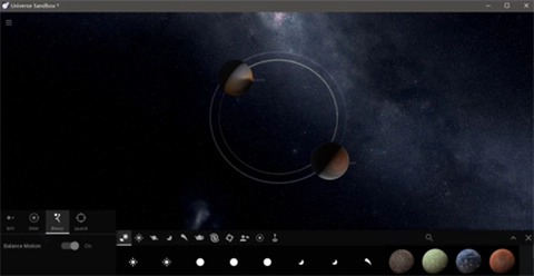 可以对星体的运动进行调节与设定,实现碰撞、环绕、撞击等效果,自由创建星系,观察各类恒星运动的呈现。