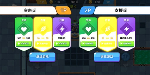 每当玩家清除掉当前场景里的所有敌人,就能进入能力选择环节,在获得对应的能力增益后,便可继续推进战斗进程。