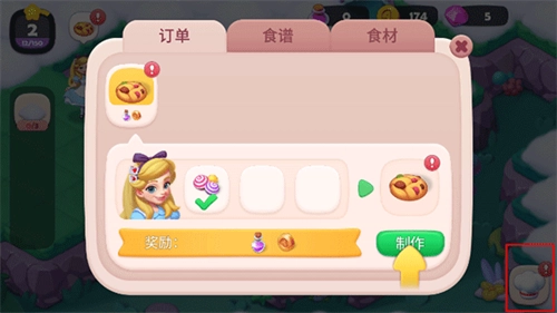 玩家点击厨师帽标志后,就能查看当前订单要求的食物并开展制作工作。