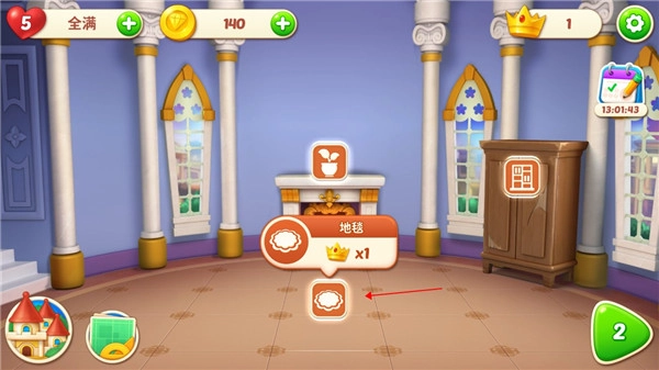 完成消除游戏后,就能用消除过程中获得的皇冠来装饰房间了。