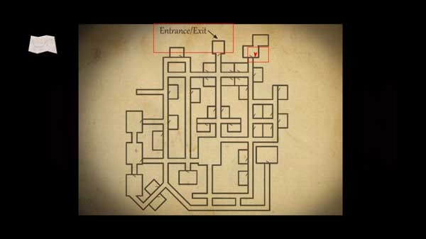 玩家能够打开地图来查看自身所处的位置,红色箭头所指向的地方便是你当前所在的位置,而标注着EXIT的那个就是出口了。
