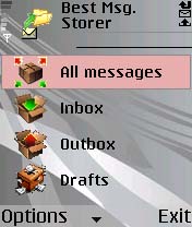 Best Message Storer V1.03.s60v3 汉化版 MessageStorer可以打破手机里信息功能的一些局限性,让你非常容易和快速地将你的短信、彩信或者E-mail保存成为文本模式并可以传送到你的PC里。软件特性如下 1.可以将信息存储为文本并进行查看 2.可以通过蓝牙、红外、E-mail或者彩信将文本发送出去 3.对要转换的短信、彩信或者E-mail可以进行筛选,可以分别进行标记/撤消标记,全部标记/全部撤消,也可以进行反选 4.可以按照类型、时间、发送者进行排序。