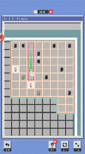游戏会自动把照片划分成若干区域,每个区域都标注了数字,这些数字对应的是需要填充的格子数量。