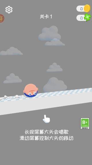 长按屏幕为大头唱歌蓄力,松开后它会根据音量高低跃起。2、除了抵达终点,每个关卡还藏着3颗音符等你收集,收集后能解锁特殊成就。3、新手关卡会引导你熟悉声控机制,后续关卡则融入了移动平台、伸缩刺钉等复杂机关。