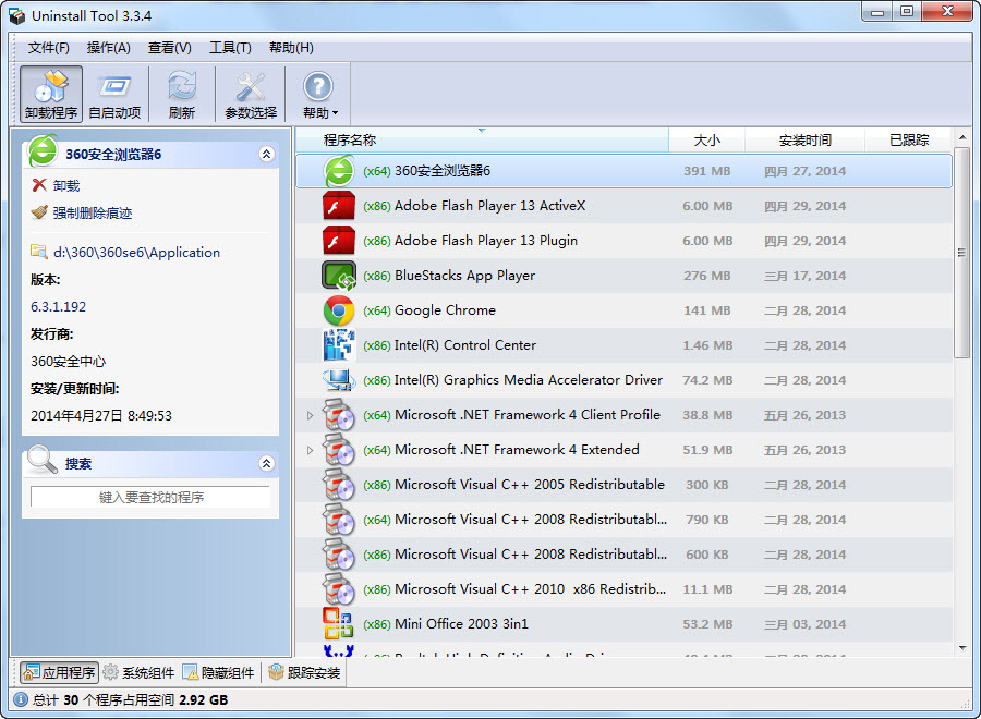 *比"添加/删除程序"快3倍!*3个应用程序分类:软件,系统和隐藏