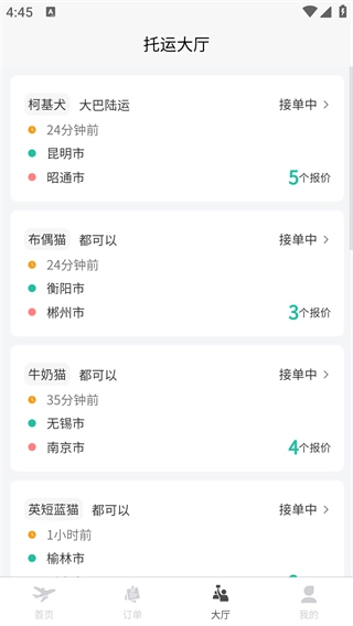 用户能够浏览不同地区的宠物托运相关信息,以便进行比较分析,从而挑选出最契合自身需求的托运服务并完成下单操作。