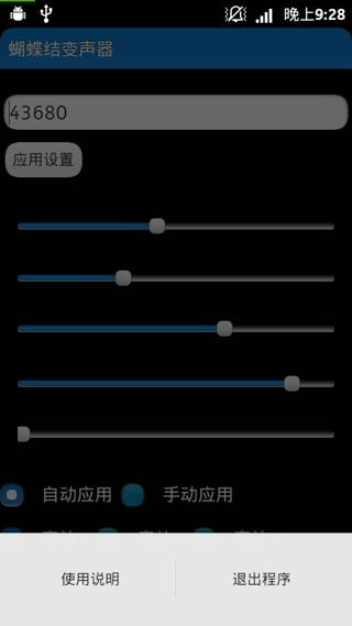 看过柯南的朋友都想要拥有像柯南一样的蝴蝶结变声器,如果有变声器,你是不是希望可以像柯南蝴蝶结变声器一样厉害呢?这个程序可以满足你小小的愿望。只需录下你的声音。拨动上面的按钮,就可以实现声音频率的改变。这个程序虽然不能完全实现里面的功能,但是仍能让大家体验到柯南变声的乐趣。