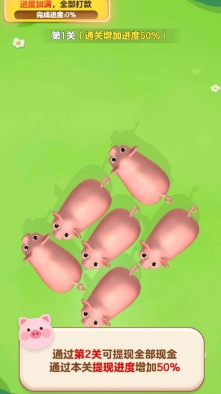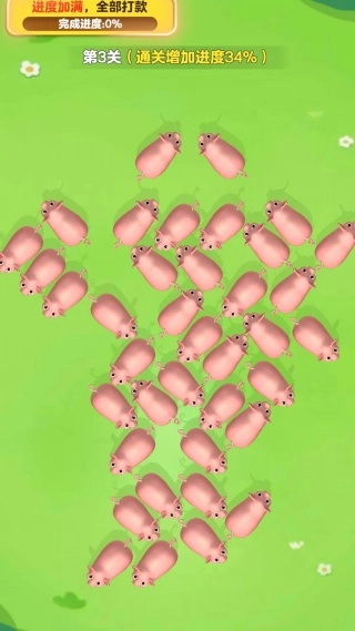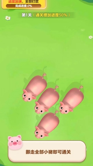 第一关的任务是把所有零散分布的小猪都移到指定区域,完成这一步就能解锁后面的挑战了。
