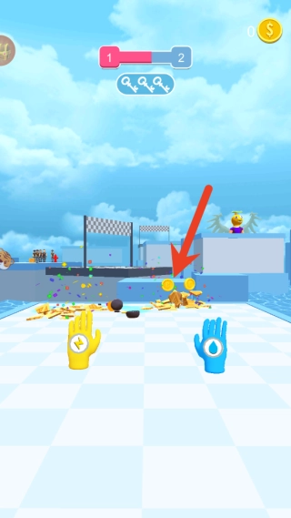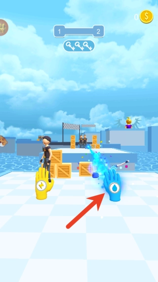 在关卡里能收集金币和装备,用来解锁和升级各类技能手套,提升攻击力以及特效效果。