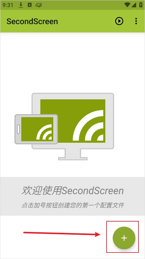 在完成SecondScreen应用的安装操作后,找到界面底部的“+”图标并点击,即可启动新配置文件的创建流程。