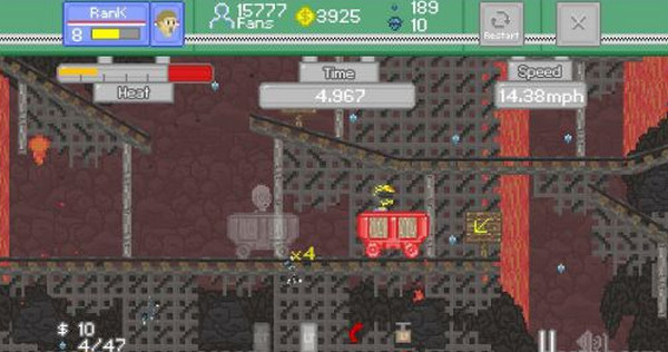 霸道矿车 免费中文版下载 霸道矿车是一款极具特色的像素游戏。游戏操作简单,但是玩起来很刺激。玩家用鼠标操控赛车来通过各种障碍物,跑的越远,分数越高。霸道矿车还内置地图便齐齐,可以自己设置地图进行游戏。