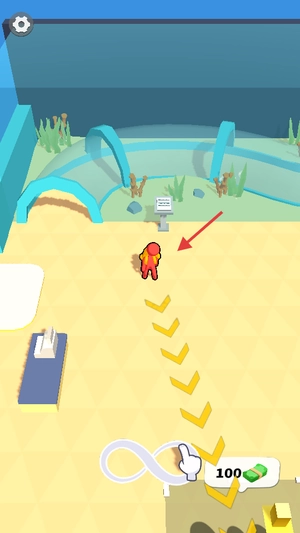 按照引导移动角色,用金币打造鱼缸,搭建起水族馆运营所需的基础设施。