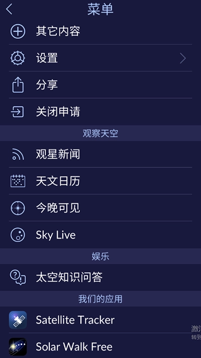 触按左上角可以实时观测上空的星星;