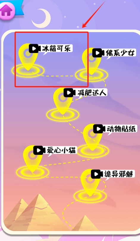按照黑色小圆点的顺序依次连接路线,起点是冰箱里的可乐,终点为金字塔,当路线连接完成后,底部的图标就会播放动画;如果操作失误,右键点击即可重新开始。