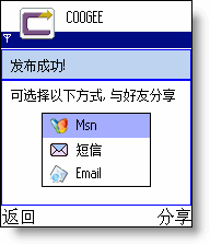 4、随时随地把手机中的内容与好友通过MSN等方式分享给自己的好友,如即时照片、录影,音乐等等一次完成。