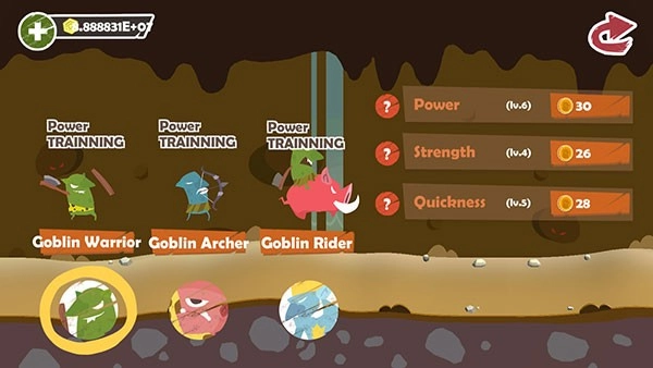 3. 游戏采用色彩鲜艳的矢量画风,哥布林的造型滑稽可爱,减轻了战争题材的沉重感,适合各个年龄段的玩家。哥布林征服世界玩法说明: