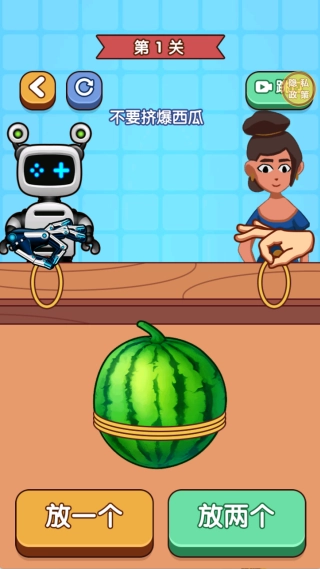 和机器人交替在绳子上摆放绳圈,通过策略性地决定摆放数量,力求让西瓜在自己最后一次摆放时破裂,这一过程考验着风险评估与预测能力。