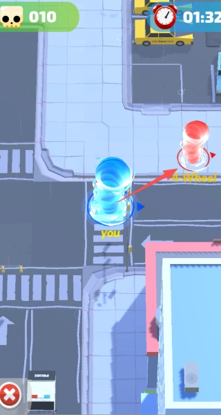 时刻留意体型更庞大的龙卷风,防止被它卷走淘汰,一旦被淘汰也能迅速复活,回到战场继续战斗。