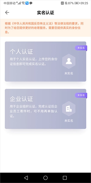 个人用户可选择【个人认证】入口,企业用户则对应点击【企业认证】选项。
