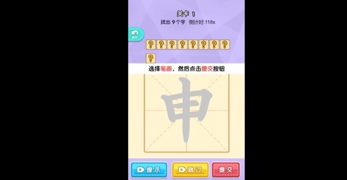 每一关都会给出一个目标汉字,玩家要在规定的笔画数内,找出正确的连接顺序,完成“一笔画”的挑战。