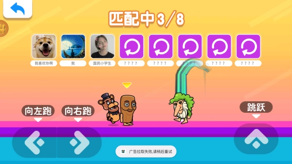 每个角色都具备独特的加速、跳跃等特殊技能,选定角色后需等待其他玩家准备完毕。