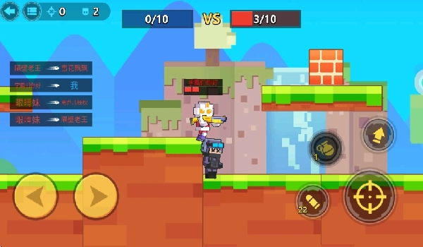 游戏的操作较为简单,很容易上手,左侧的虚拟按键用来控制角色左右移动,右侧的按键既能进行射击,也能投放炸弹。