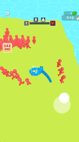 这是一款以蛇形生物为主角的休闲策略游戏,玩家将操控一条能够进化的蛇,通过围捕场景中的火柴人来获取资源。