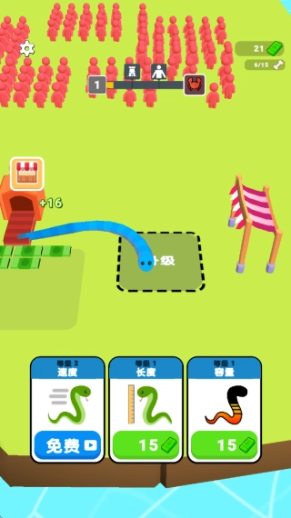 之后玩家能够花费金币来增强蛇蛇的属性,这样就能更高效地捕捉火柴人,以此来对付关卡里的最终BOSS!