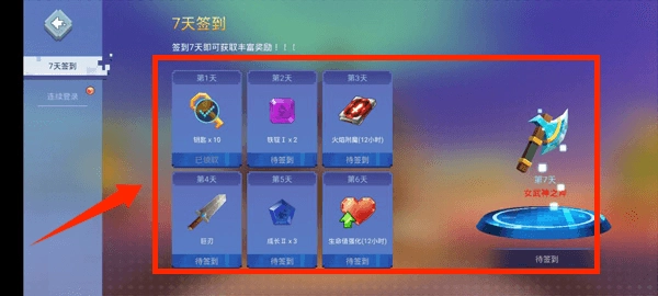 七日签到中可以获得大量奖励。