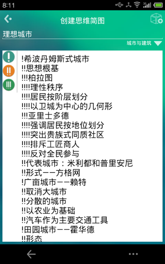 思维简图是一款非常实用也很简单的软件,使用思维简图安卓版时,只需要根据软件难度规则用感叹号来分级,然后输入你的想法和思路就能很快的出现思维简图,让你的思路更加清晰。