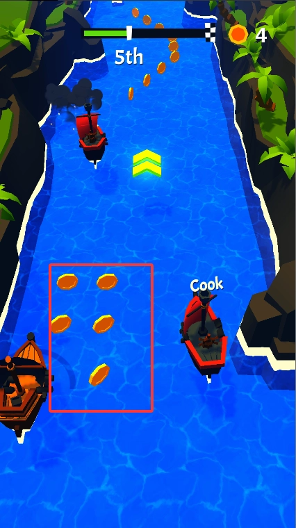 游戏的基础玩法是操控海盗船在复杂的水域中航行,灵活使用武器攻击对手,同时保护自己免受伤害,第一个到达终点的玩家获得胜利。