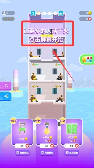 进入游戏后点击屏幕开始挑战,让更多人活下来。