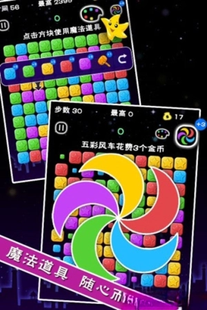 满天星消除带来轻松愉悦的体验,连接相同色块即可创造绚丽效果。简单规则下藏着策略深度,连击越多得分加成越高。缤纷色彩搭配动感特效,带来视觉上的愉悦享受。关卡设计循序渐进,从基础布局到复杂组合逐步挑战。清新界面聚焦核心玩法,随时随地都能享受消除乐趣。打破方块时的清脆音效,更增添了游戏过程的满足感。