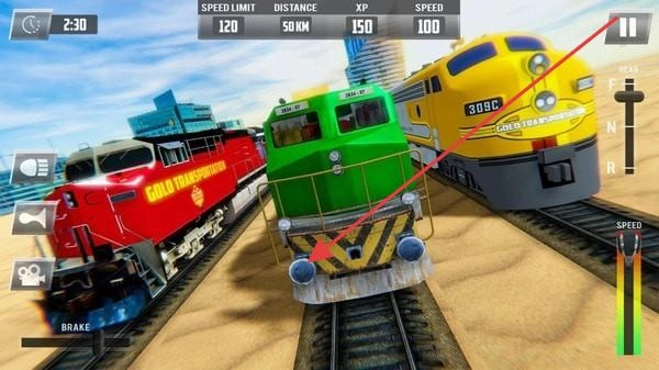 先选择“火车启动”模式!挑选绿色车头,在3秒内点击加速按钮启动,注意不要超过120的限速,每行驶1公里就能获得5个金币,过程非常顺畅,还能解锁红色和黄色的列车皮肤。