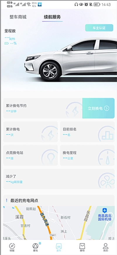 在车辆专属页面,用户能够便捷地完成试驾预约或直接下单购车;完成购车后,通过专属服务模块,可使用智能车联相关功能,还能查看个人累计换电记录、已使用过的换电站等个性化信息,同时也能快速查找周边的充换电设施为车辆补充能源。