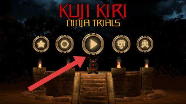 在主界面找到红箭头指向的播放按钮并点击,即可进入《Kuji-Kiri-Ninja-Trials》,开启你的忍者试炼之旅。