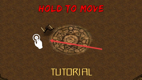 在教程页面,长按红箭头所指的特定区域,学习“按住移动”(HOLD-TO-MOVE)操作,从而掌握基础玩法。