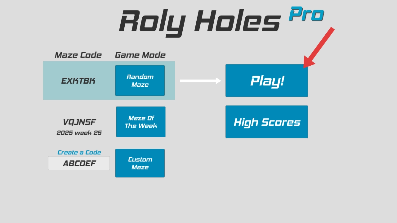 进入滚洞游戏的主界面后,可选择迷宫模式(例如【Random Maze】),点击【Play】按钮即可开启迷宫冒险之旅。