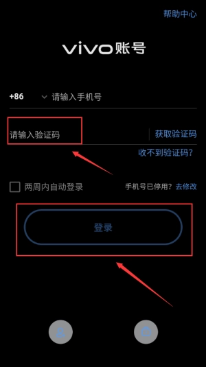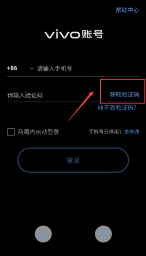 点击红框获取验证码按钮,等待短信接收。