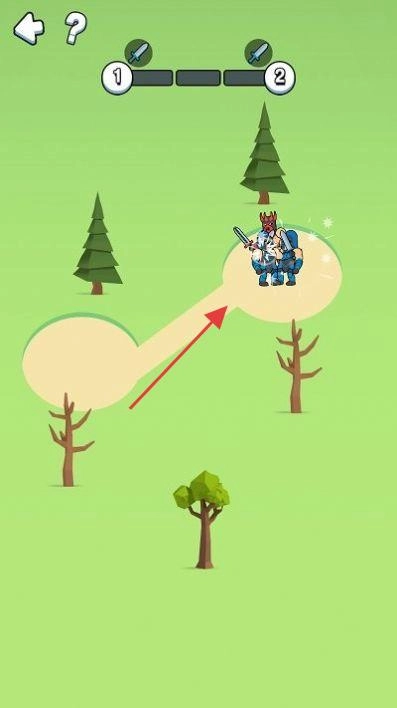 在地图上点击士兵,让其沿着指定路径移动,以此探索未知区域;当士兵靠近敌人时,便会触发战斗;此外,还可以将相同兵种的士兵合并,从而实现数量或武器方面的升级。