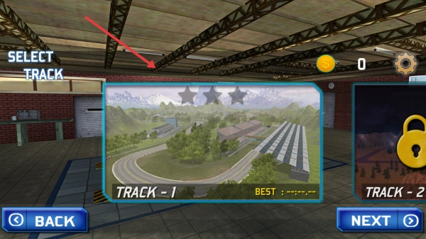 进入赛道选择界面,选定“TRACK-1”赛道,在此过程中熟悉该赛道的弯道分布与地形特点,提前规划好漂移路线,力求取得优异成绩。