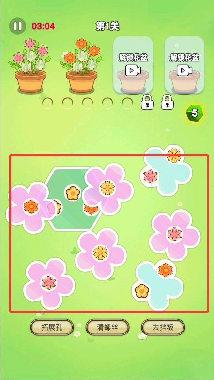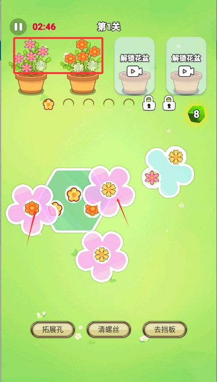 进入游戏后,我们需要把花花上的小花拆除掉。