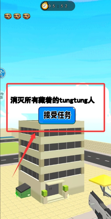 接收系统任务,要找出藏在隐蔽地方的tungtung人,用精准射击把所有目标都清除掉。