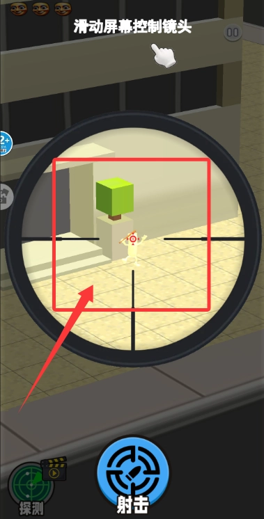 小心挪动倍镜搜寻目标,借助瞄准一枪击中射击造成伤害,达成击杀人物的任务。