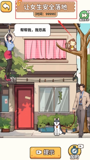 点击提示按钮,帮助女生安全落地过关。