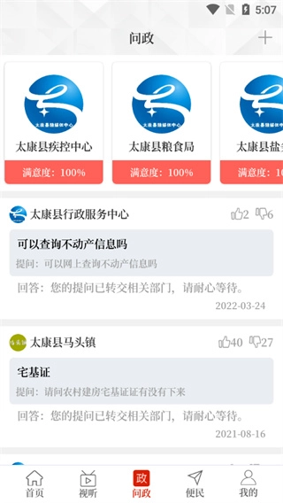 “问政”界面则是可以向有关部门反映一些问题;
