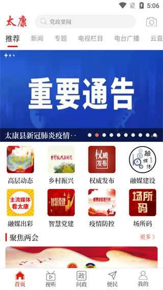 打开应用后,主界面会呈现出太康县相关的各类政务资讯内容。