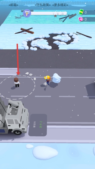 互动推进:前往马路区域,与棕色衣服的NPC以及铲雪车进行互动,共同完成积雪的运送工作。